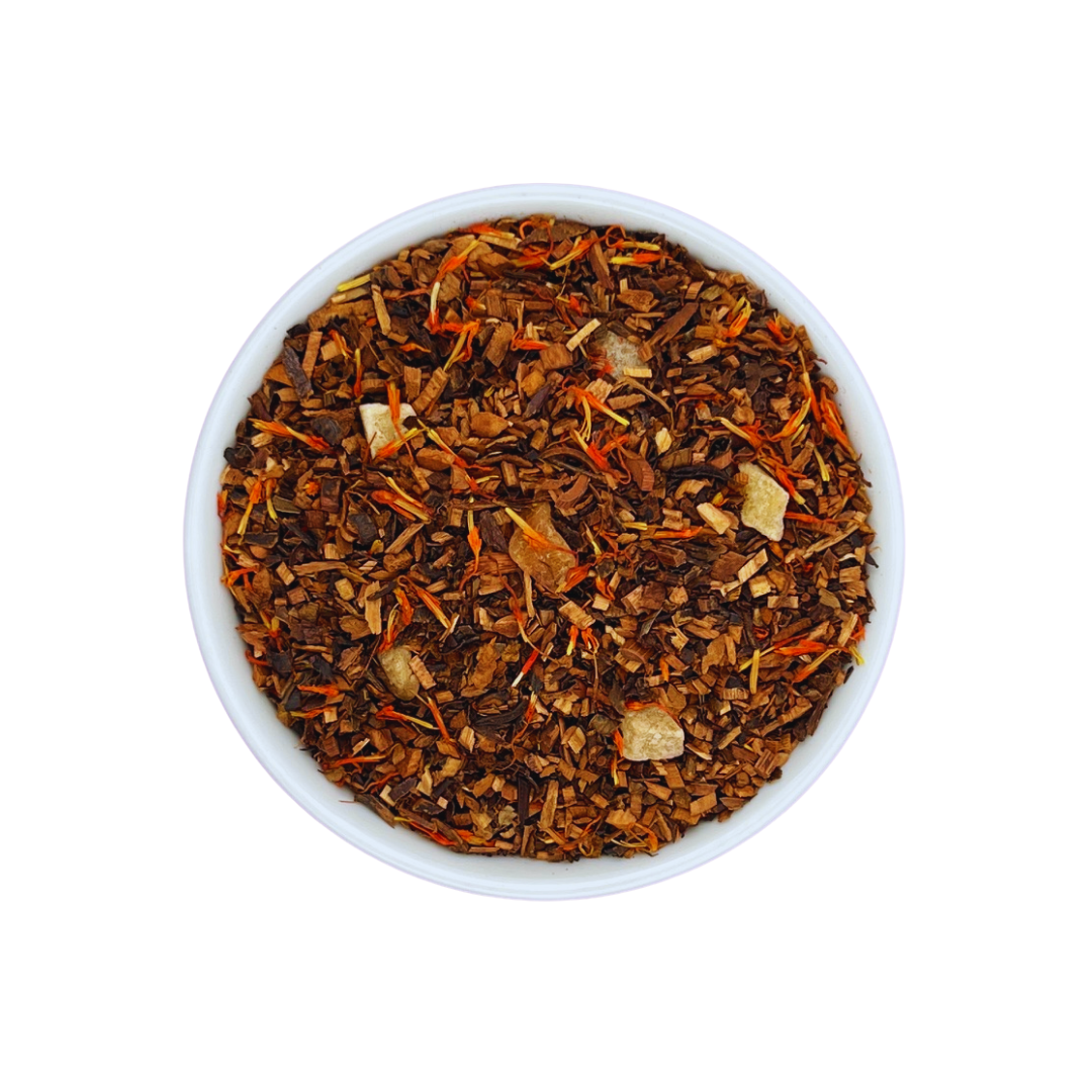 Honeybush, Papaya Pieces (Papaya, Sugar), Flavoring, Safflowers.